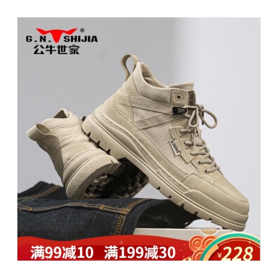 商品名称:公牛世家【头层猪皮】男鞋工装鞋子男新款加绒保暖马丁靴男百搭男靴登山靴 杏色 44(标准运动尺码)
