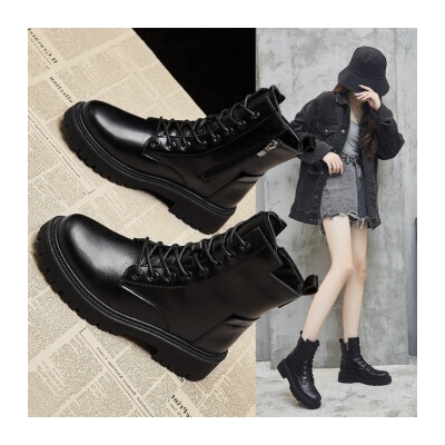 TEWEIWEI马丁靴女冬季新款加绒保暖厚底增高显瘦英伦风短靴女鞋靴子女 F06黑色【单里】 37