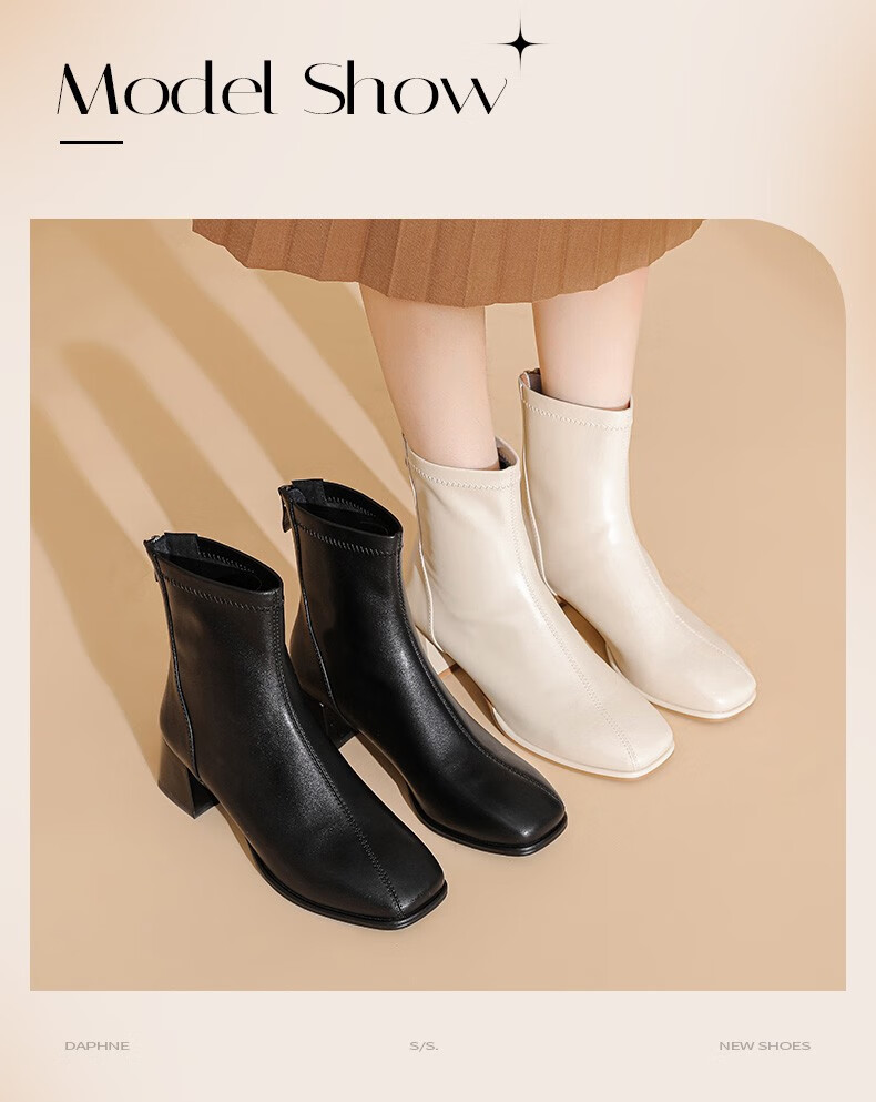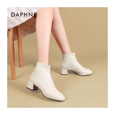 商品名称:达芙妮(DAPHNE) 短靴女秋冬2022新款马丁靴女瘦瘦靴裸靴法式粗跟靴子女 米色【单里直线款】 37