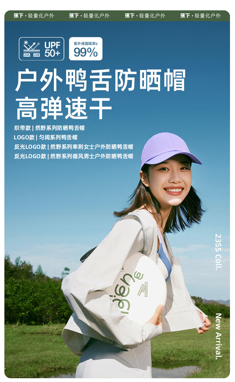 商品名称:蕉下帽子春秋男棒球帽鸭舌帽男帽子女户外防紫外线情人节礼物 月凝灰
