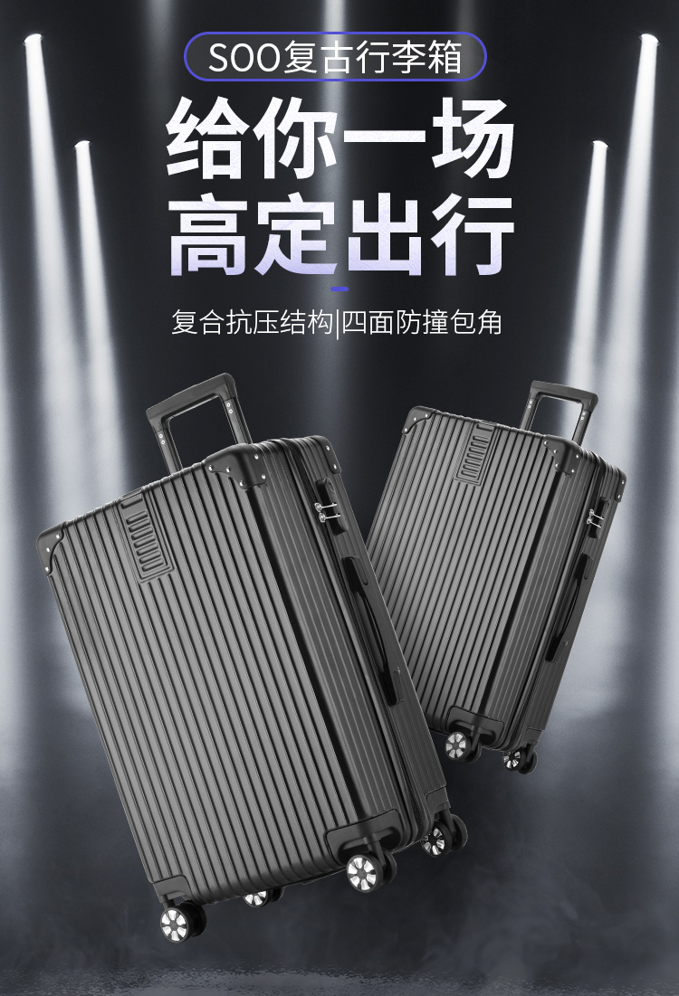 商品名称:SOO行李箱男万向轮拉杆箱耐磨抗摔26英寸A330旅行箱密码箱女商务黑色